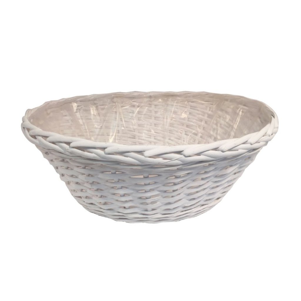 CUENCO ALTO C/BORDE TRENZADO BLANCO, 40 CM D., 15 CM ALTO, 29 CM PROF.