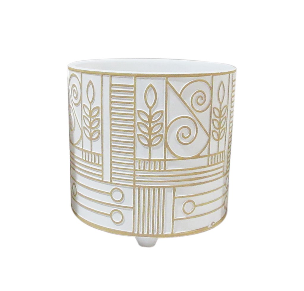 Inicio » Tienda » Maceteros » MACETERO C/PATAS BLANCAS Y DECO DORADAS LIBERTY D13.5 H13.5 TERRACOTA MIN 6 PZ