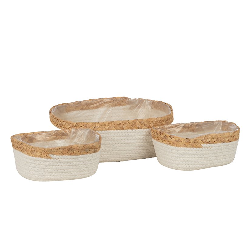 CESTO ACAMPANADO S/3 ASAS BLANCO/NAT S D21 H19-B D28 H24 TELA HIERBA