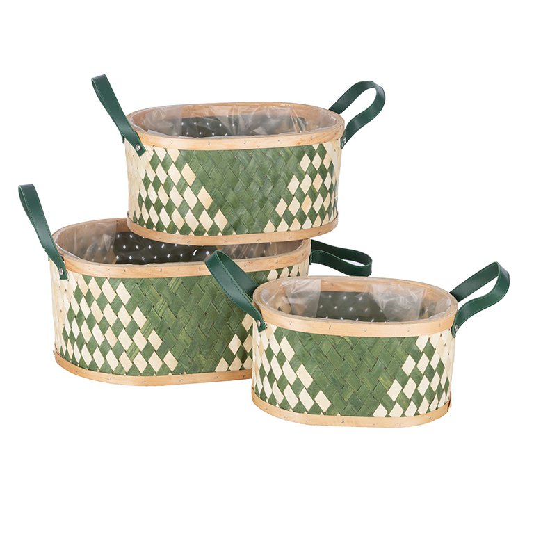 S/3 CUENCOS OVAL C/ASAS. 27X20, H14; 37X29, H17 MADERA VERDE Y NAT.