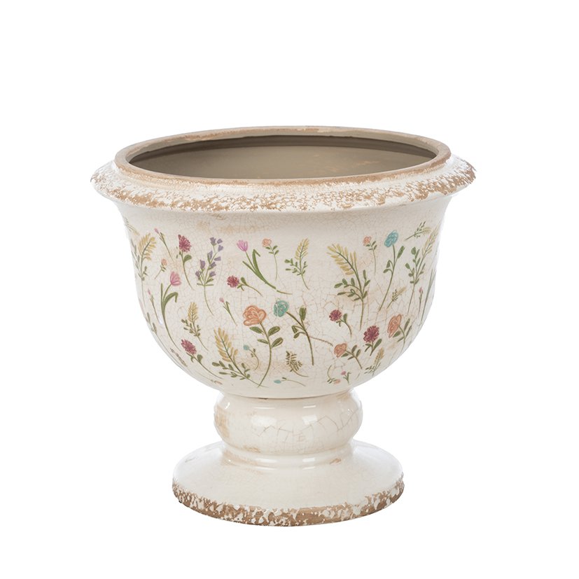 FLORES Y HOJAS CREMA CRACKLE MACETERO D14.5 H14 CERAM. MIN 4 PZ