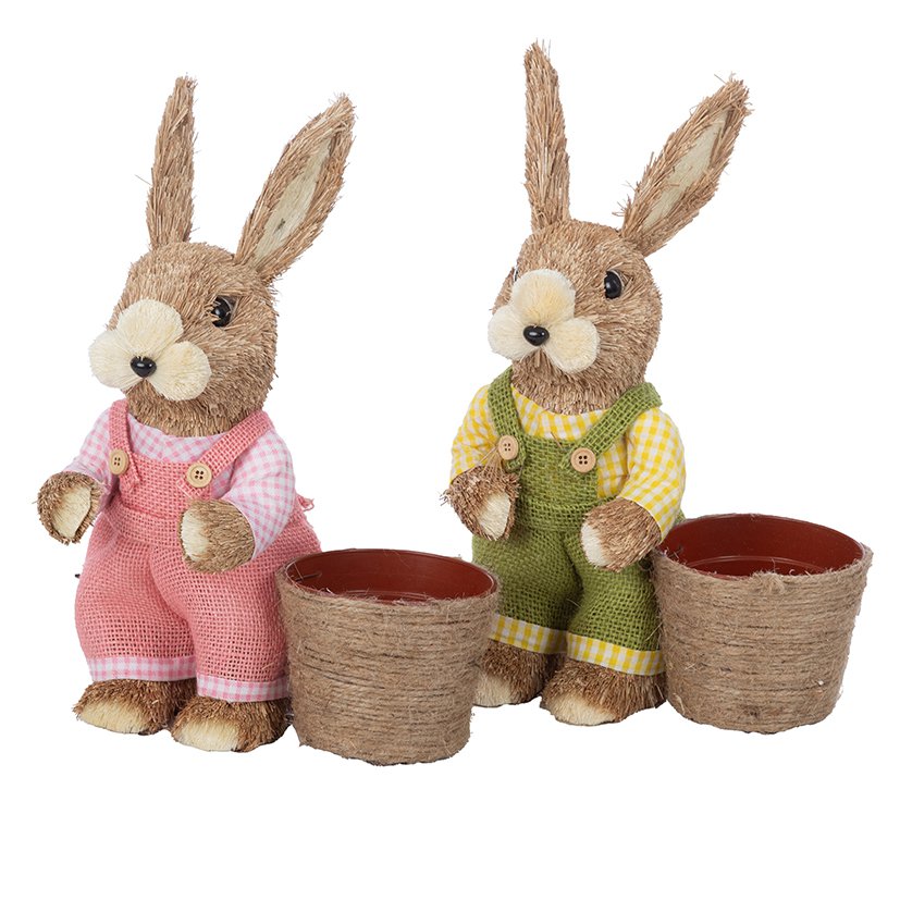 CONEJOS 2 MIX COL C/MACETERO 21X13 H30 MACETA D9 H8 HIERBA MIN 2 PZ