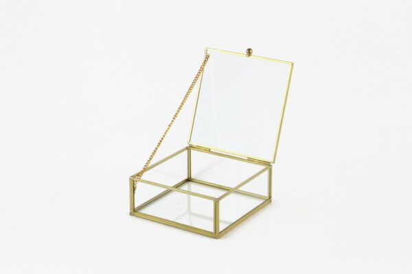 CAJA VIDRIO/METAL DORADO 12,2 X 12,2 CM, ALTO 5,2 CM