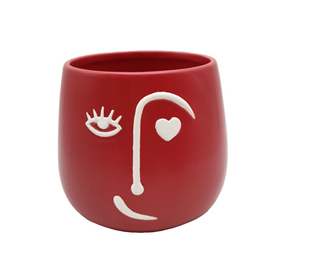 MACETERO C/CARA Y OJO CORAZÓN ROJO D16.5 H14.5 (4CFX2PCS) MIN 8 PZ