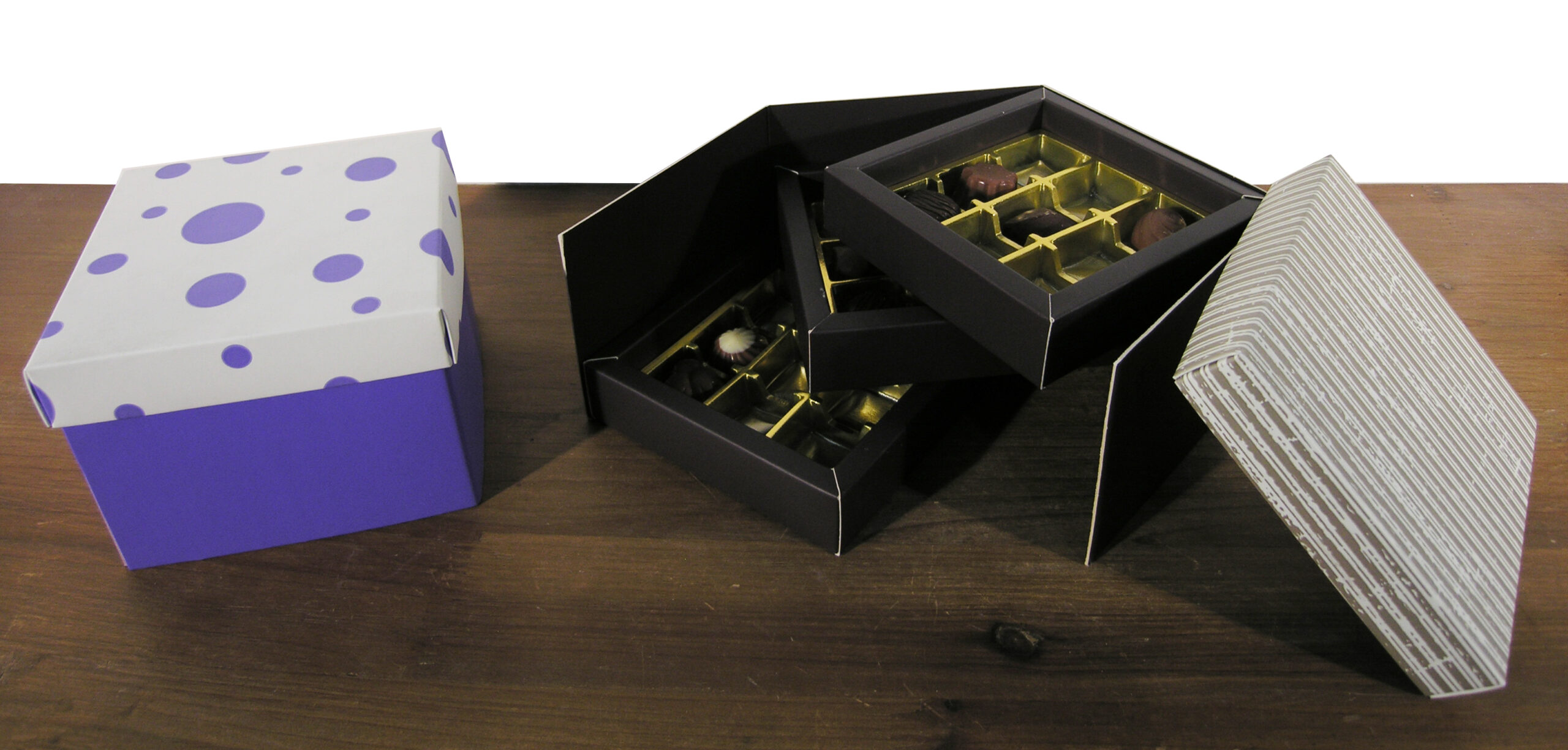 CAJA CUADRADA 3 PISOS RAYAS CHAMPAGNE BASE MARRON MATE 14*4